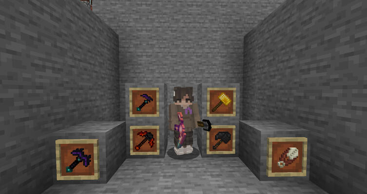 The Tool-Smith keeps the gatherers of the world happy. They're needed to create any higher tier tools when it comes to digging or just farmwork. It's also important to note that they can even create at higher costs, aoe versions of normal tools capable of destroying blocks in a wide radius. Much like Armour-Smith and Weapon-Smith, Tool-Smith uses the Alloy system.